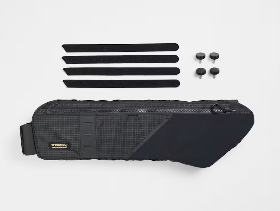 Com uma bolsa tão bem integrada, vais-te esquecer que estás a transportar equipamento. Oculta por baixo do tubo superior, a bolsa de quadro Trek Adventure fixa-se de forma segura na tua bicicleta com parafusos de cabeça estriada ou cintas para permitir que transportes todo o equipamento, snacks e acessórios que necessitas para tornar cada volta numa aventura.
