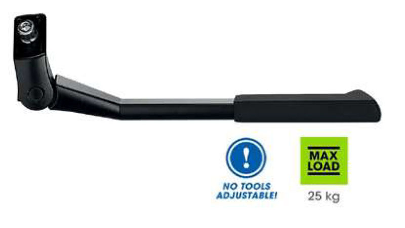 Além da beleza, no entanto, este descanso encarna a máxima praticidade. é possível ajustar o seu comprimento através de um botão colocado na parte de trás do pé e isto torna-o adequado para bicicletas de 26' e 28'