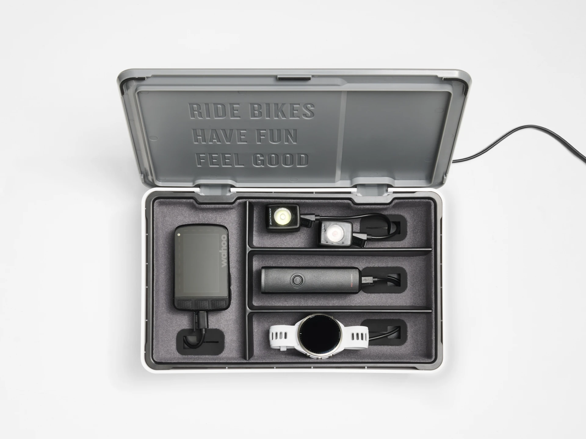 - Uma solução de carregamento elegante e organizada para a eletrónica de ciclismo