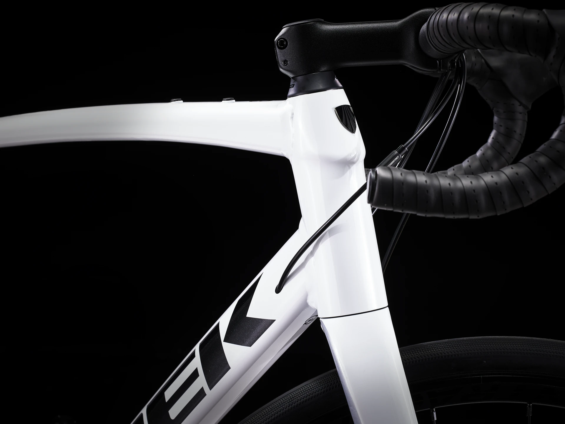 Domane AL em carbono, coluna de direção cónica em alumínio, cabos internos dos travões, pontos de fixação para guarda-lamas, travões de disco flat mount, eixo passante de 12x100 mm